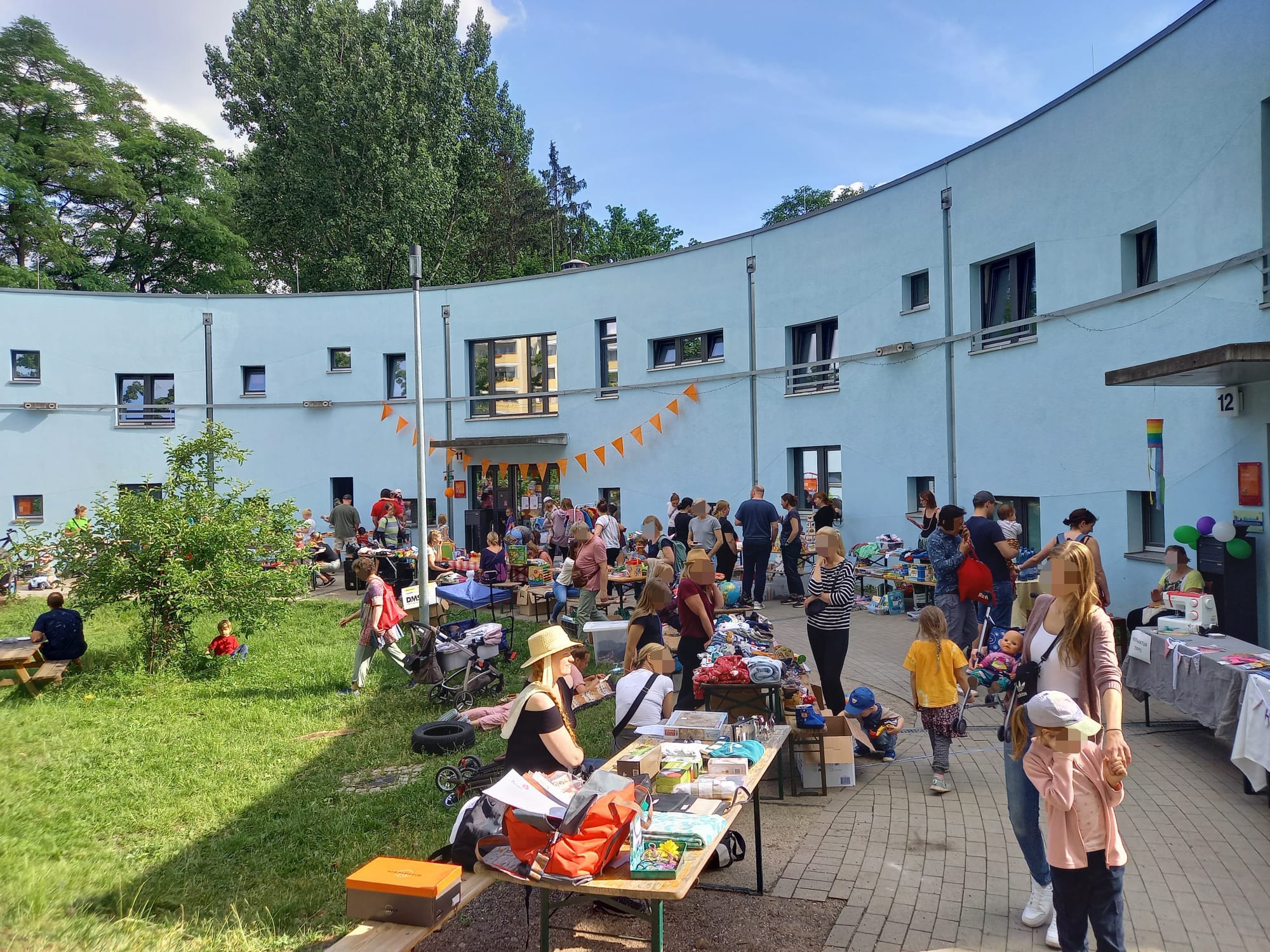 Zusammen mit dem Stadtteilzentrum Hedwig haben wir am 31.05.24 den Tag der Nachbarn gefeiert. Auf unserem Nachbarschafts-Flohmarkt gab es Live Musik von uncle_rust, das Team von B.E.N.N. Alt-Hohenschönhausen hat bunte Aufmal-Tattoos gemalt, die Kita Hedwig hat leckeren Kuchen verteilt und der VskA Nachbarschaftsarbeit kam auch vorbei.